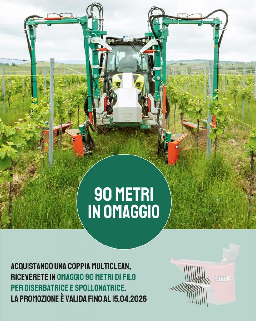 MULTICLEAN è dotata di flagelli estremamente robusti e lisci che tosano l’erba intorno e tra le viti, senza danneggiare il ceppo. Grazie alla sua particolare forma conica, l’albero in alluminio può ruotare ad un numero di giri elevato producendo poche vibrazioni. Disponibile nella versione piccola, media e grande.
