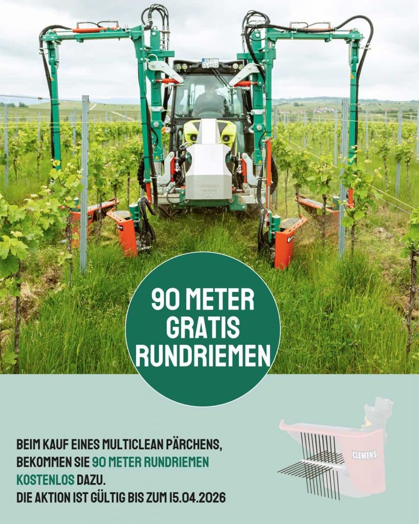 Eine verlängerte Arbeitswelle garantiert eine optimale Bearbeitung in breiteren Anlagen. Somit ist die MULTICLEAN XL besonders für den Obstbau geeignet.